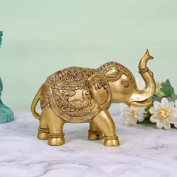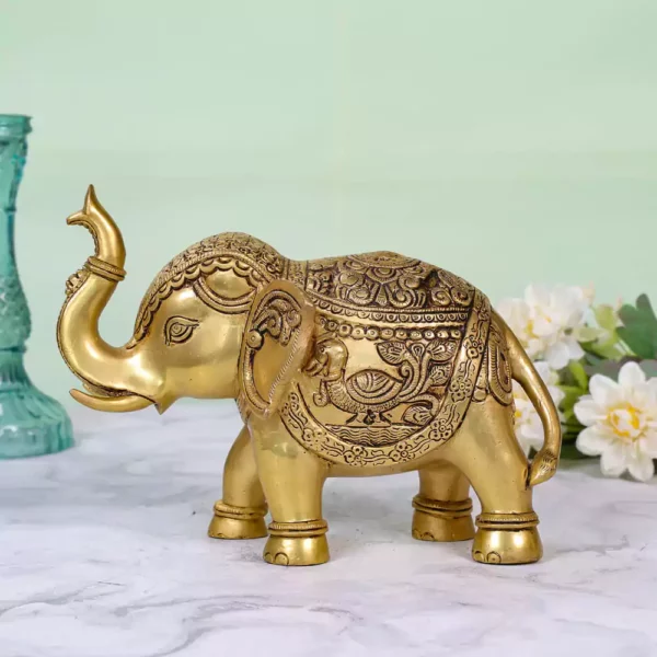 Symbol of Wisdom and Luck: In many cultures elephants are revered as symbols of wisdom strength and good fortune. This beautifully engraved brass elephant serves as a meaningful and auspicious addition to any home decor bringing positive energy and a touc