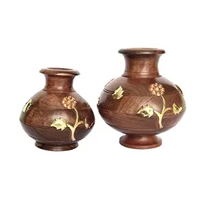 Brown Wooden Matki Set of Two for...