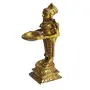 No matter how many candles you have a diya has its own grace. Decorate your interiors in this Chritmas in an interesting manner with this classy showpiece featuring an Deeplaxmi oil lamp stand. This amazing oil lamp stand can be placed in your living room or in your office and is considered highly auspicious and known to give positive vibes all around. Made in India This lamp stand is made up of Brass adorned in our signature gold matt finish with a protective coating over it.