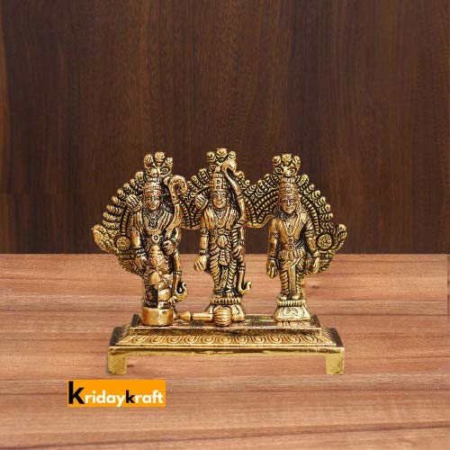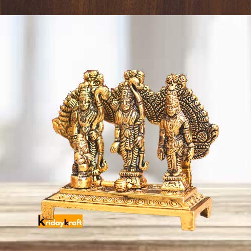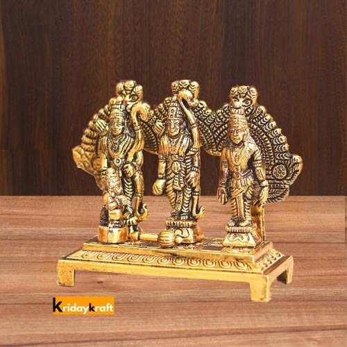 This handcrafted antique idol of Lord Ram Darbar is made of metal. The Statue is polished Golden Color to give it an alluring antique look. The gift piece has been prepared by the creative artisans of Prince Home Decor & Gifts. This is a product designed emotionally made by rural artist as a skilled artist of Prince Home Decor & Gifts. A very appealing Eye catching ethnic Antique traditional style master piece. Enhance the decor value of the temple house office hotel. Great for during weddings house warming ceremoniesventure award ceremonies . Complete the decor for your festival celebration in the utmost of style or add some indian flair.