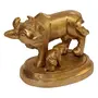 In Hindu mythology Kamdhenu cow alongwith its calf is considered highly auspicious for countering the vaastu doshas (architectural faults) & enhancing luck & prosperity.Each part of the cow embodies a particular deity. It is also believed that as Kalpa-vriksha (heavenly tree) Kamadhenu also fulfills the desires of those who approach it with devotion. Ideal to keep in home or gift on new house ceremony. Please bear in consideration that mini and miniature statues in brass or any metal don't always have sharply defined features due to size constraints