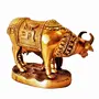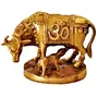 Purpledip Brass Idol Kamdhenu Wishing Cow-Calf with Auspicious Om & Swastika Symbols: Good Luck Charm Decor Gift (11385)