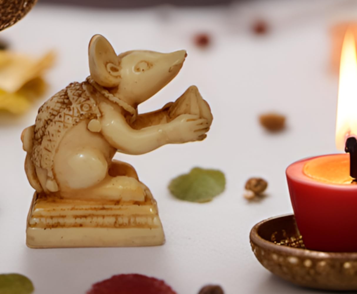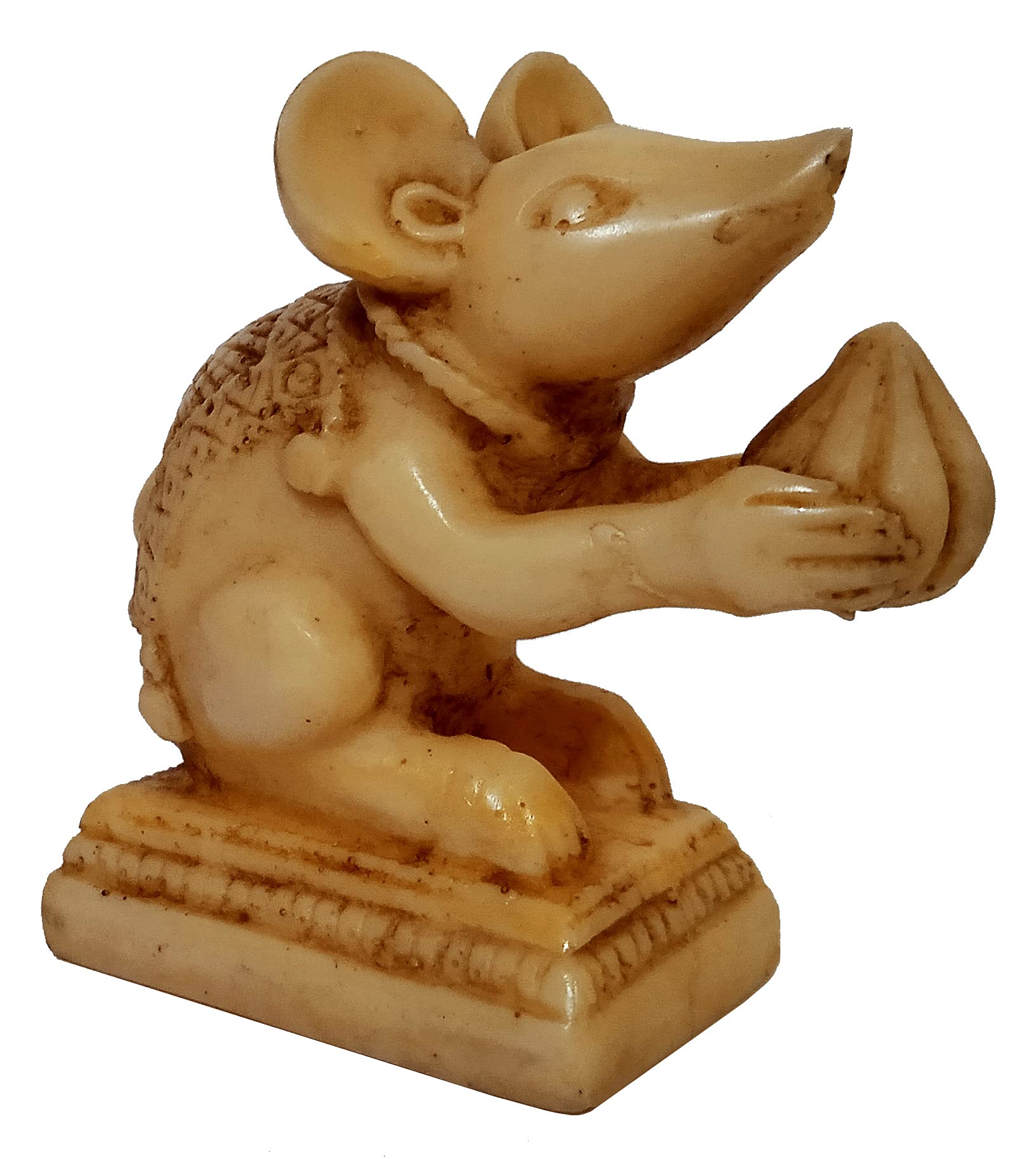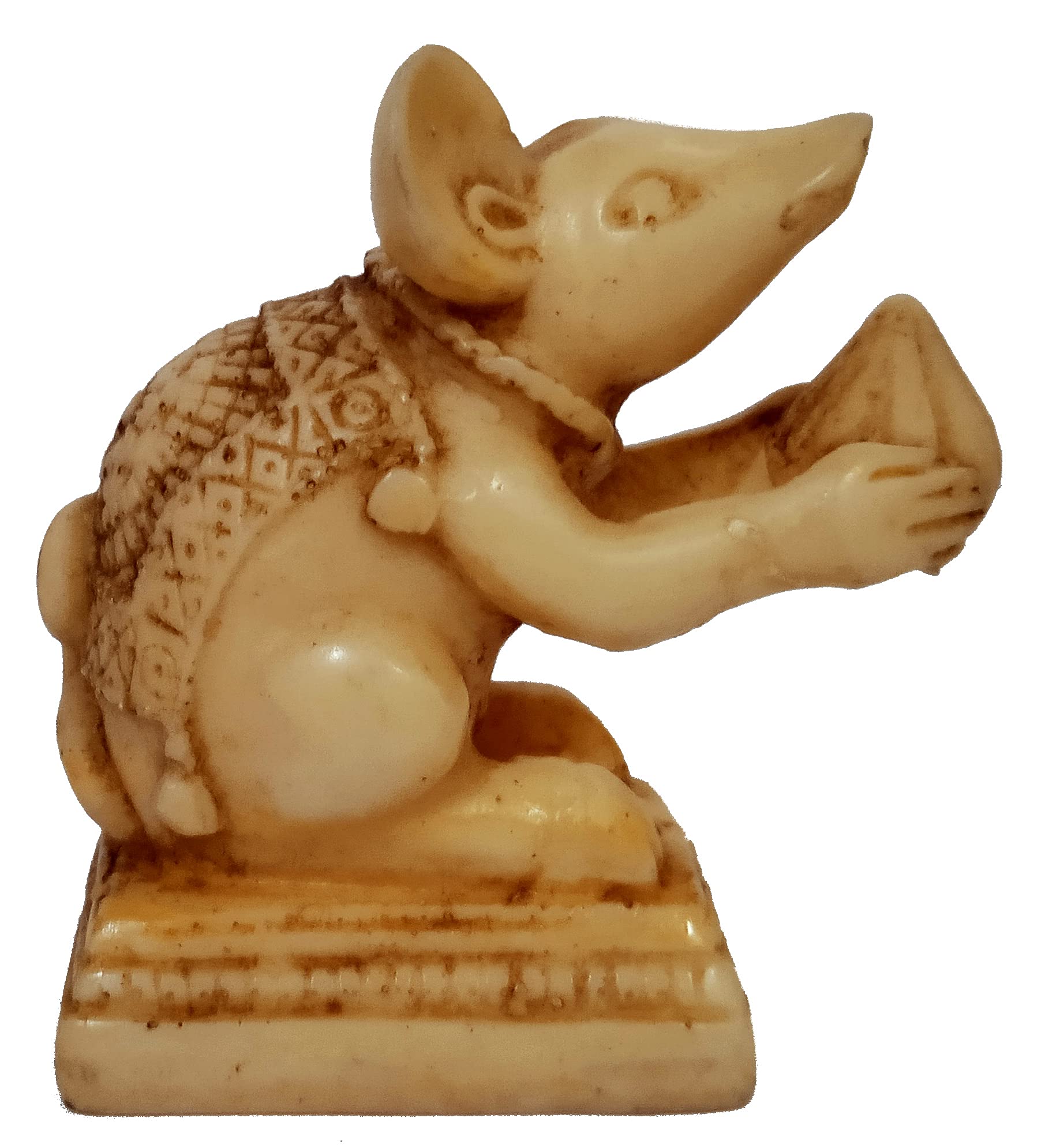 Lord Ganesha's vahana is a mouse which symbolises crushing useless thoughts. The mouse moves around with modak or Ganesha's favorite sweet Modak