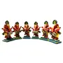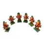 This is Hand made light weight lacquer wooden music standing Ganesha playing diffrent musical instruments. This is Handicraft decorative hand painted showpiece from Varanasi. Dimension of each music ganesha idol is 8 cm x 4 cm and weight is 225 Gm. This set of 6 handicraft art music ganesh bawla is in Red and yellow colour.