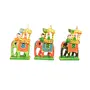 VARANASI WOODEN TOYS Wooden Mysore Ambari Multicolour Set of 6. This model looks amazing on display. Admire its distinctive colors and cool accessories. VARANASI WOODEN TOYS Mysore Elephant Ambari is made of softwood and it's lightweight. This Mysore elephant Ambari represents the Mysore Dasara Festival. One can decorate these elephants in their Living Room Drawing Room and Kids' room which will surely give the home a traditional look. One who wants to decorate their Golu in Mysore Dasara theme can decorate with these elephants. The detailed carving on wood is known as Tellaponiki which gives a very beautiful artistic look. So we can say that in Golu time these Elephants one can use to decorate Bommala Koluvu. These Indian handicrafts represent Indian traditions. size-8.5 x 2.5 x 4.5 cm clean with a dry cloth. NOTE- the handmade product may vary in color and size.