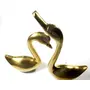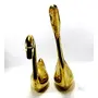 WOOD CARVING WORK beautiful metal pair of decorative kissing golden swan/ duck birds showpiece item for home living area bedroom office and showrooms and for gifting purposes (bigger swan/duck is around 7.1 x 2.2 x 6 inches and the smaller one is 5.5 x 2.1 x 4.5 inches; together weigh 540 grams)