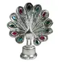 WOOD CARVING WORK White Metal Silver Plated Fengshui Peacock Bird Statue Showpiece Decorative Figurine for Home Living Room Office Bedroom Dcor (7 inches)