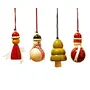 YULETS is a set of 4 Christmas tree hangings - Fairy Santa Snowman and a Tree shaped bell - all made in wood. These Christmas decorations are handcrafted using traditional lacware technique and are coloured with natural dyes. This product is made by member artisans from Channapatna in Karnataka India. is a non profit company promoting the Channapatna Lacware craft and is a member of the World Fair Trade Organisation. IMPORTANT: Product for Indoor Use Only. Lac coating can get damaged if exposed to outdoor weather conditions. Our product range consists of Channapatna toys / KDs toys Gifts and Accessories. handcrafted wooden toys include crib toys rattles stackers peg toys push toys pull toys mathematical and counting toys build and play toys building blocks wooden spinning tops puzzles skill toys Small walkers rocking horse etc. Our Gifts and Accessories include 's room decor like wall pegs mobiles pencil boxes; Home decor products like candle holders coaster sets planters vases fridge magnets lamp shades Christmas decorations etc. By purchasing our eco friendly products you will be providing livelihoods for the lacware artisans of Channapatna and breathing life into this traditional handicraft.