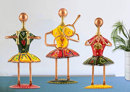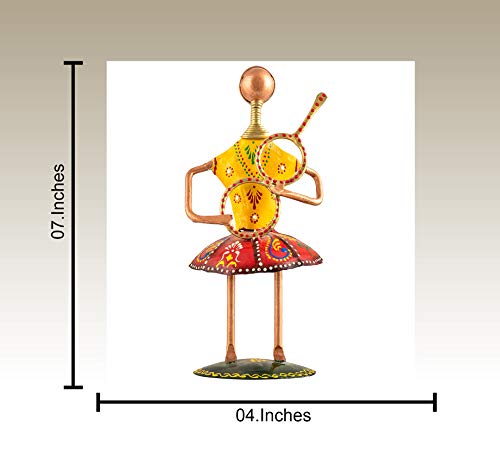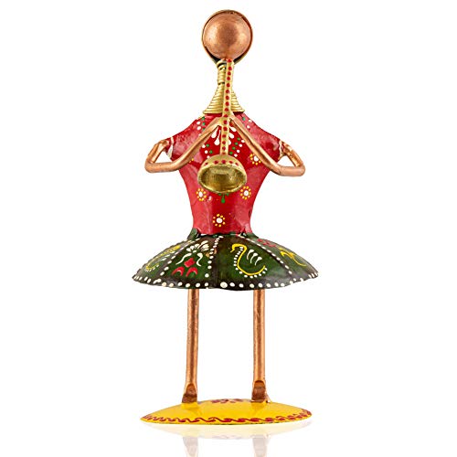 Make a decorative your home with this metal tribal lady playing different instrument showpiece table top sculpture while sticking to traditional style. An amusing way to spruce up the look of your room is by picking table decor from our wide collection. These table decor are carved with impressive designs and styles that have the ability to give your room a new appeal. In varying sizes colors and materials these decor items are a must buy.