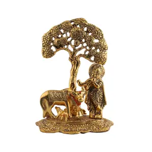 AONA Metal Gold Krishna with Cow Home...