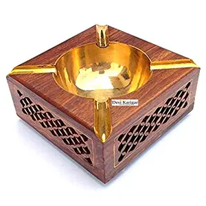 Brown Sheesham Wood Brass & Steel Ash...