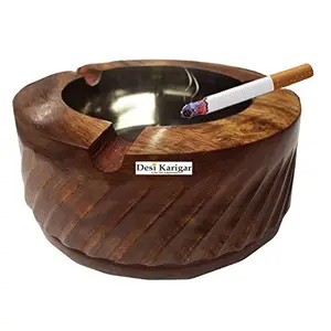 Brown Wooden Ash Tray with Cigarette...