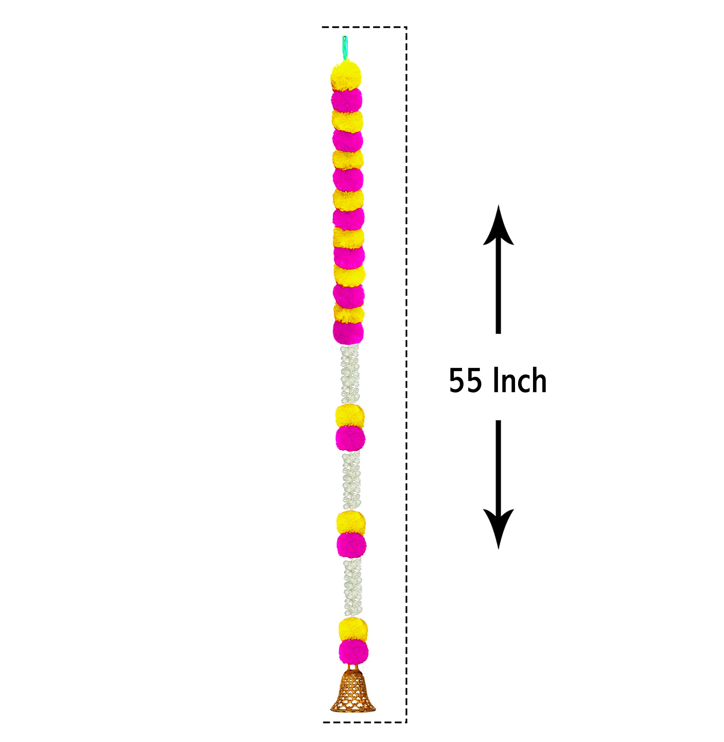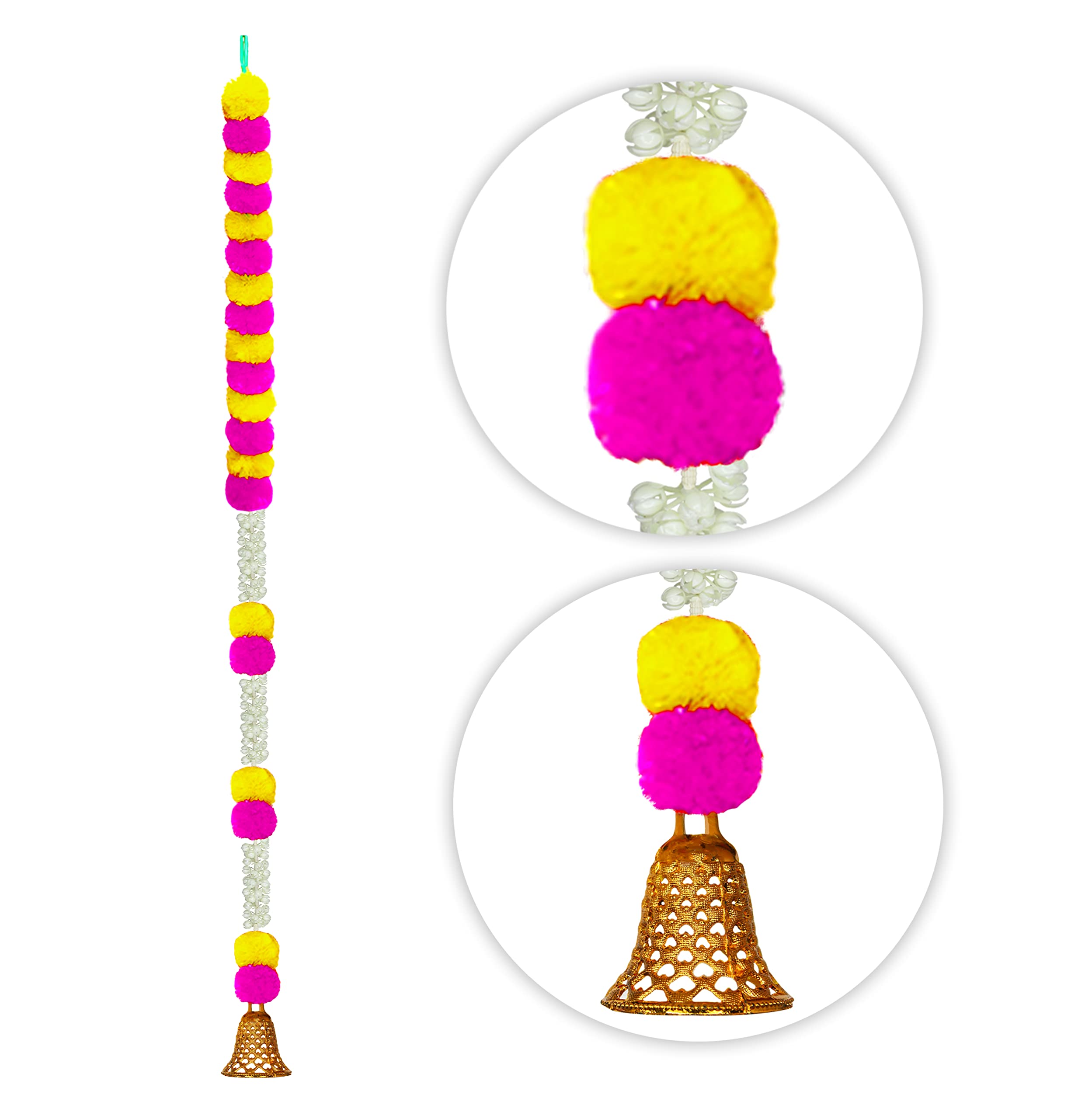 HomeHomeHome AccentArtificial FlowersCraftox Decora Handmade Artificial Fluffy Marigold with Jasmine Flower Garland with a Golden Bell at The Bottom Used for Decoration Colour Pink & Yellow Pack of 10 (33004-10)