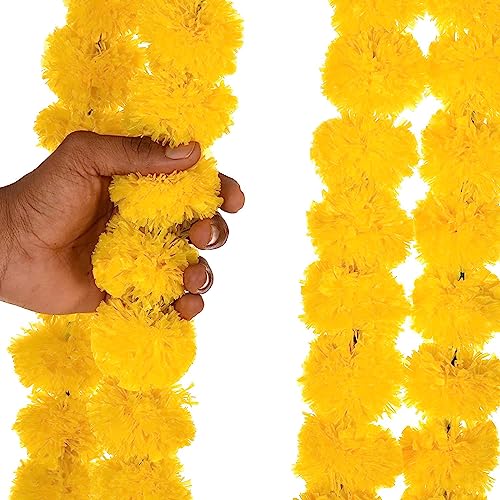 Festive Vibes 2 Pcs Marigold Flower Garland Diwali Decoration 5ft Long Strands Artificial Marigold Flowers Hangings Tassels for Home Indian Wedding Indian Decor for Pooja Deepawali Yellow