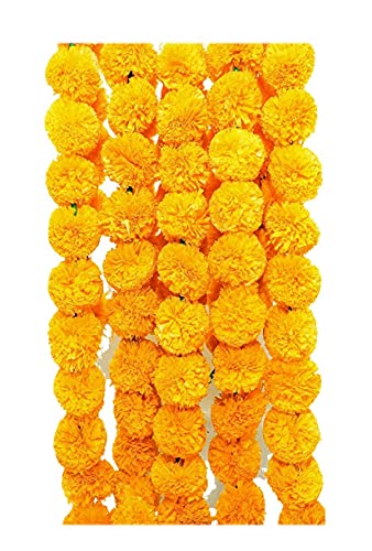 Hemito Artificial Marigold Flowers for Decoration Long Marigold Garlands for Decoration Toran Indian genda phool for Wedding & Festivals Diwali (Yellow/Set of 5 Mala)