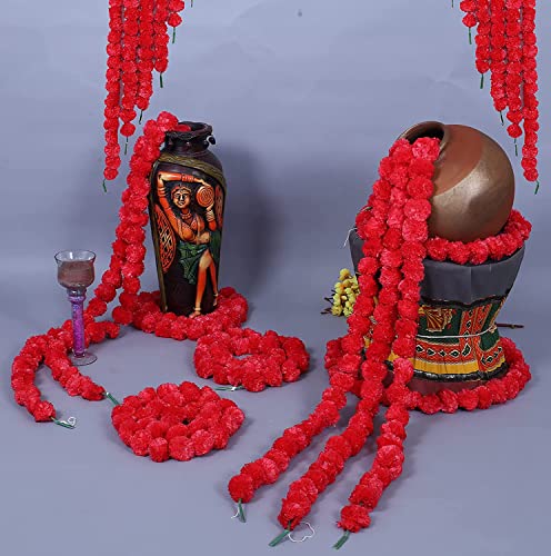 Kapoor Crafts 5 Pcs Artificial Marigold Flowers for Decoration Long Marigold Garlands/Toran/Strings for Decoration genda phool Mala for Wedding & Festival(Red)