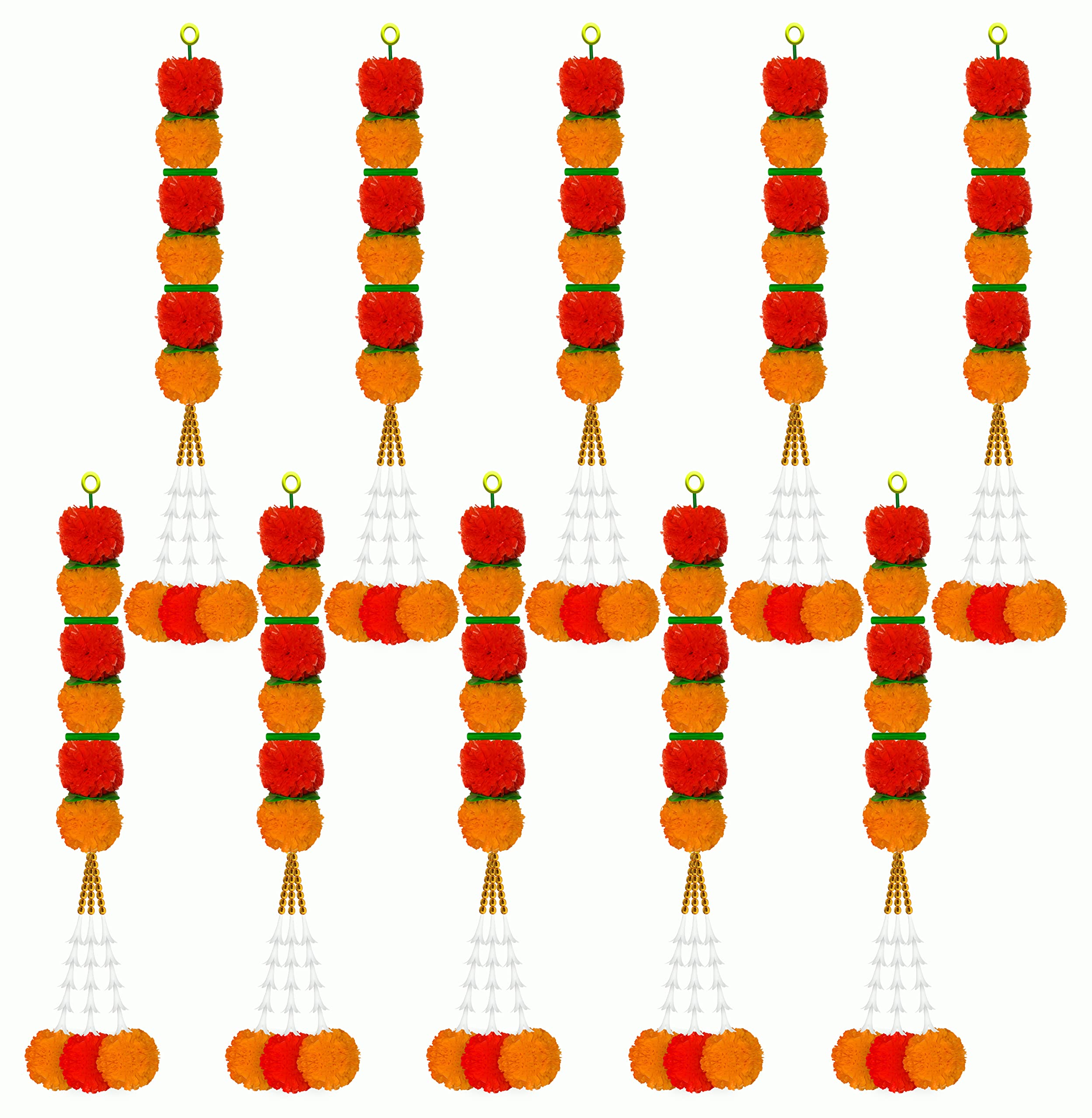 iHandikart Artificial Marigold Garland with Tuberose Flower at The Bottom for Home/Festive Decoration|Office Home Diwali Decoration| Colour Light & Dark Orange Pack of 10 (HV33704-10)
