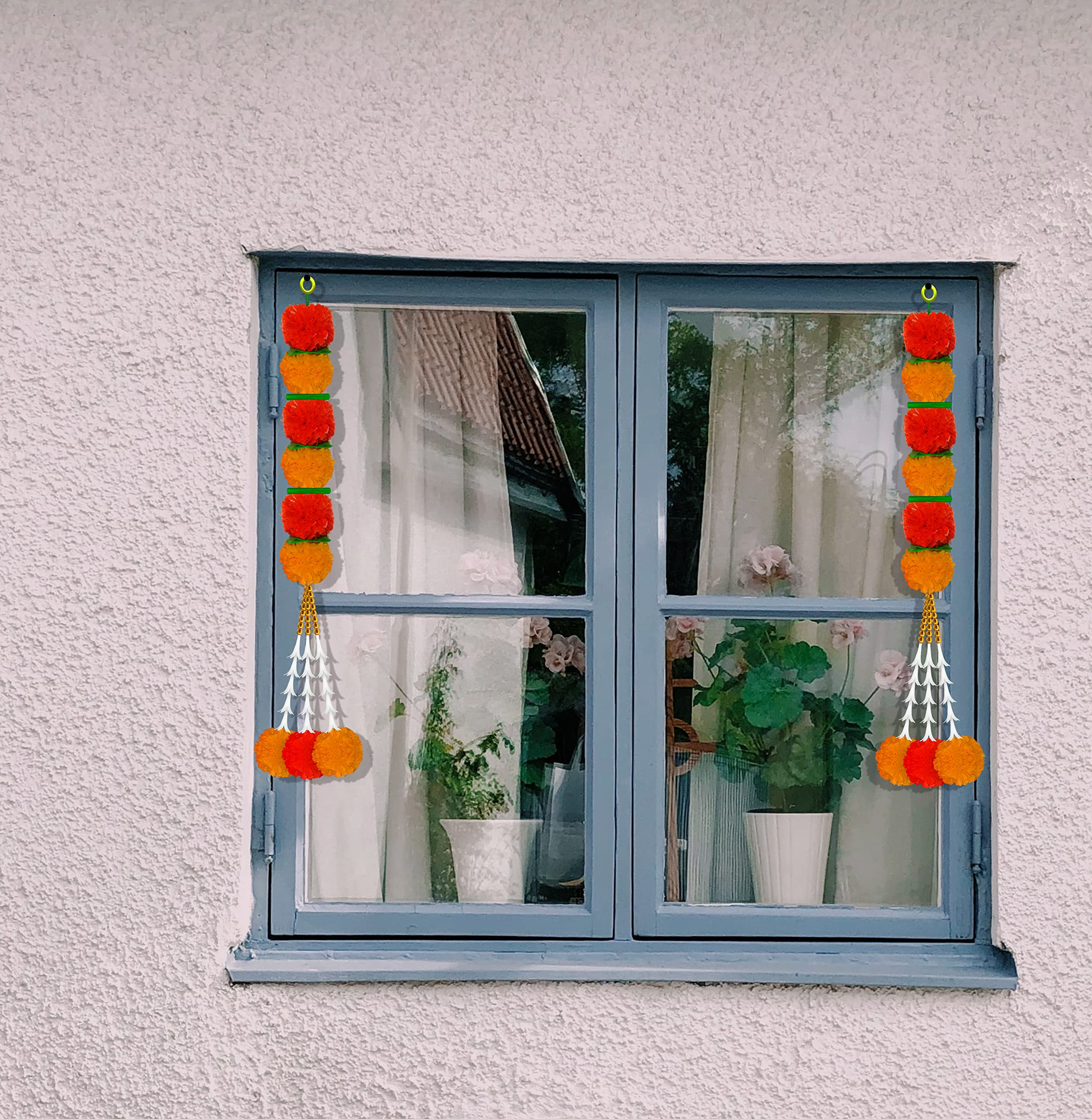 HomeHomeHome AccentArtificial FlowersiHandikart Artificial Marigold Garland with Tuberose Flower at The Bottom for Home/Festive Decoration|Office Home Diwali Decoration| Colour Light & Dark Orange Pack of 10 (HV33704-10)