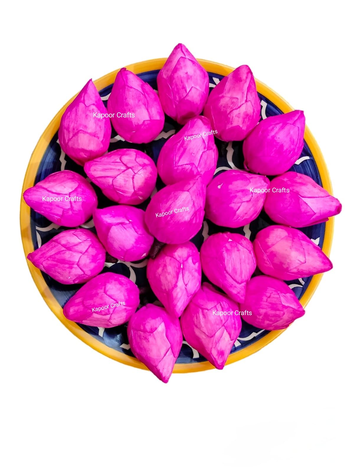 Kapoor Crafts 10 Pcs Artificial Sola Wood Paper Fake Lotus Bud Flowers for Decorations Garland Making Pooja Decor Wedding Housewarming Table Decorations (4 cms)