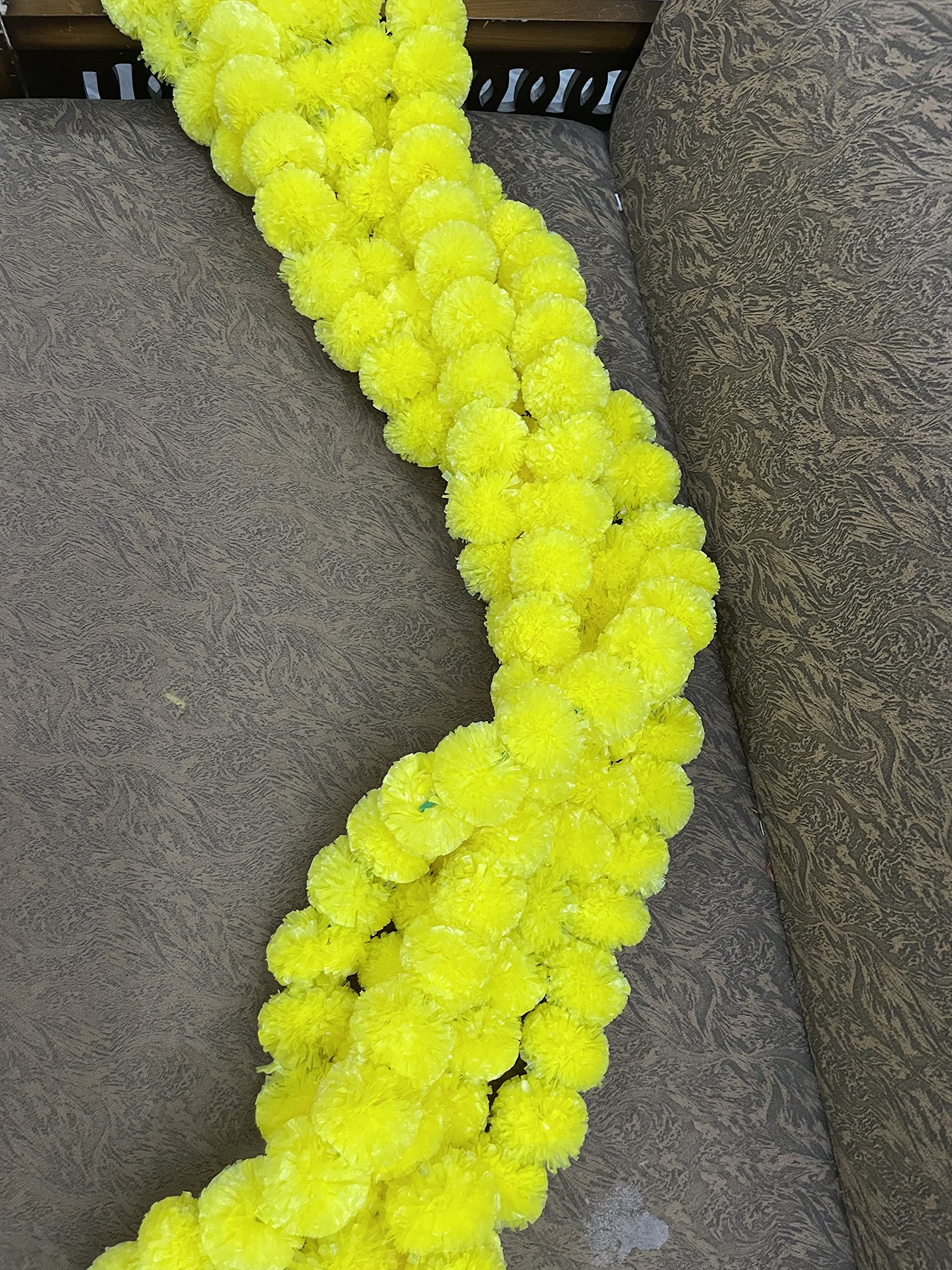 Package includes -Sphinx artificial marigold fluffy flowers garlands for decoration as per selected color. 1 packet has 5 strings