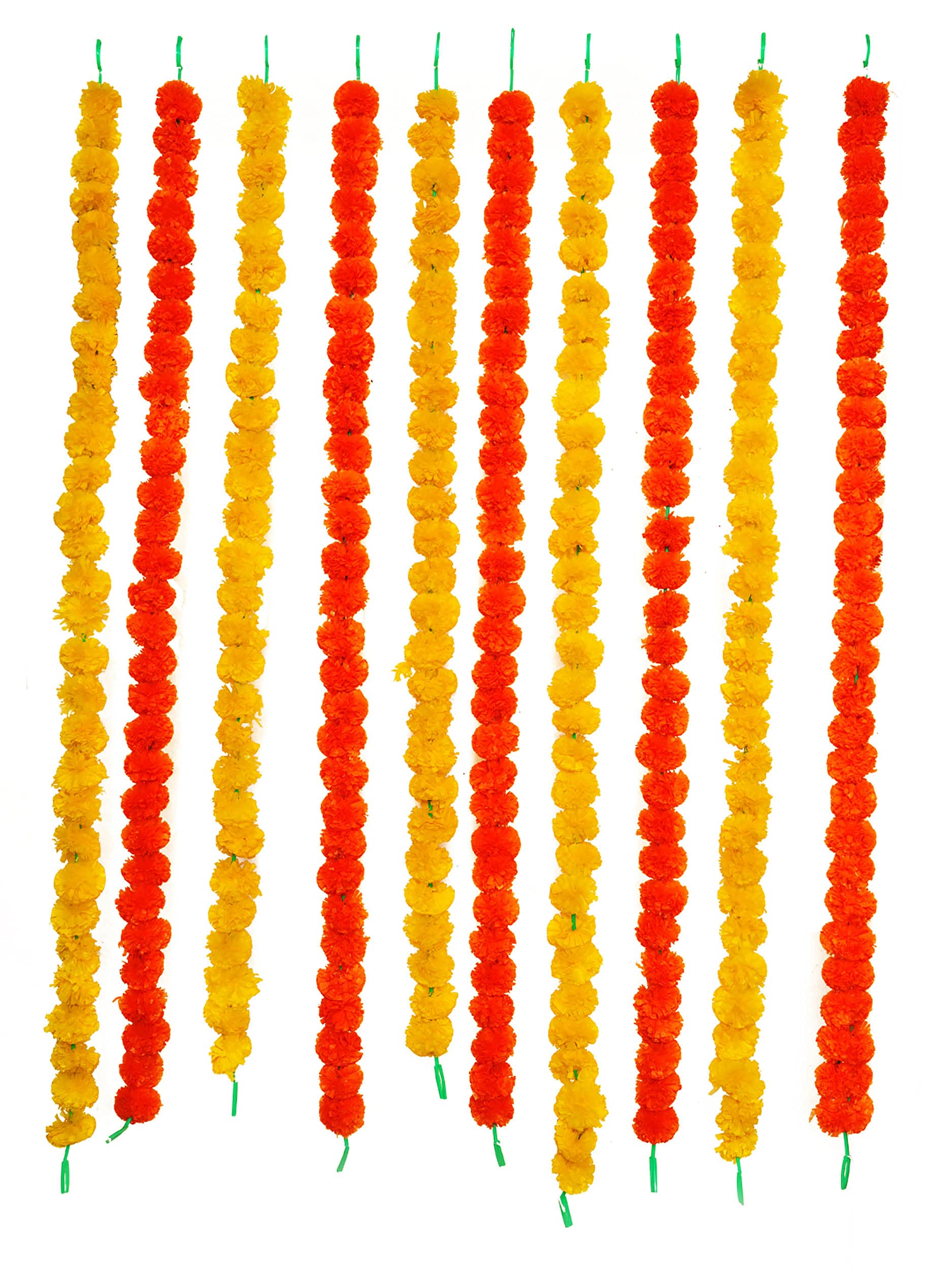 The Package Contains:- Pack of 10 Artificial Marigold Flowers Garlands (Multicolour)