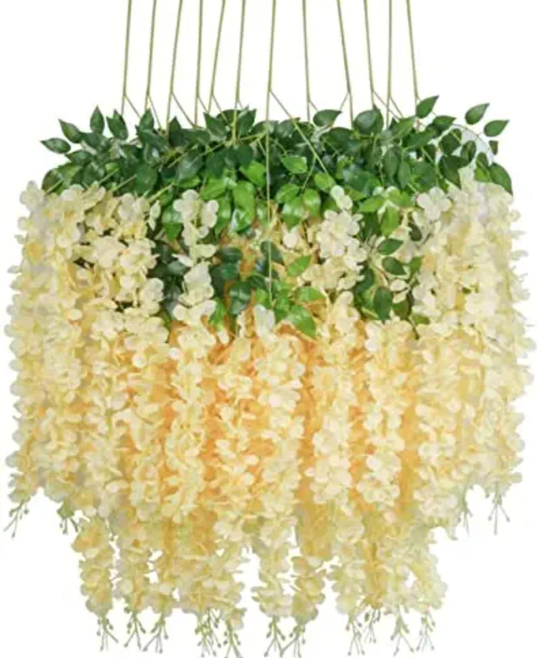 HomeHomeHome AccentArtificial FlowersTreewing Decorative Wisteria Plant Garland Vine Creeper for Hanging with Artificial Leaves 110Cm Long Garland for Christmas Decoration Party Home Wedding Festivals Diwali (Off-White 2)