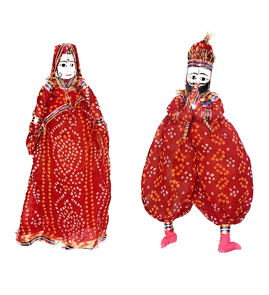 RAJASTHANI PUPPETS Wood Folk Puppets Standard Red 1 Male and 1 Female Puppet