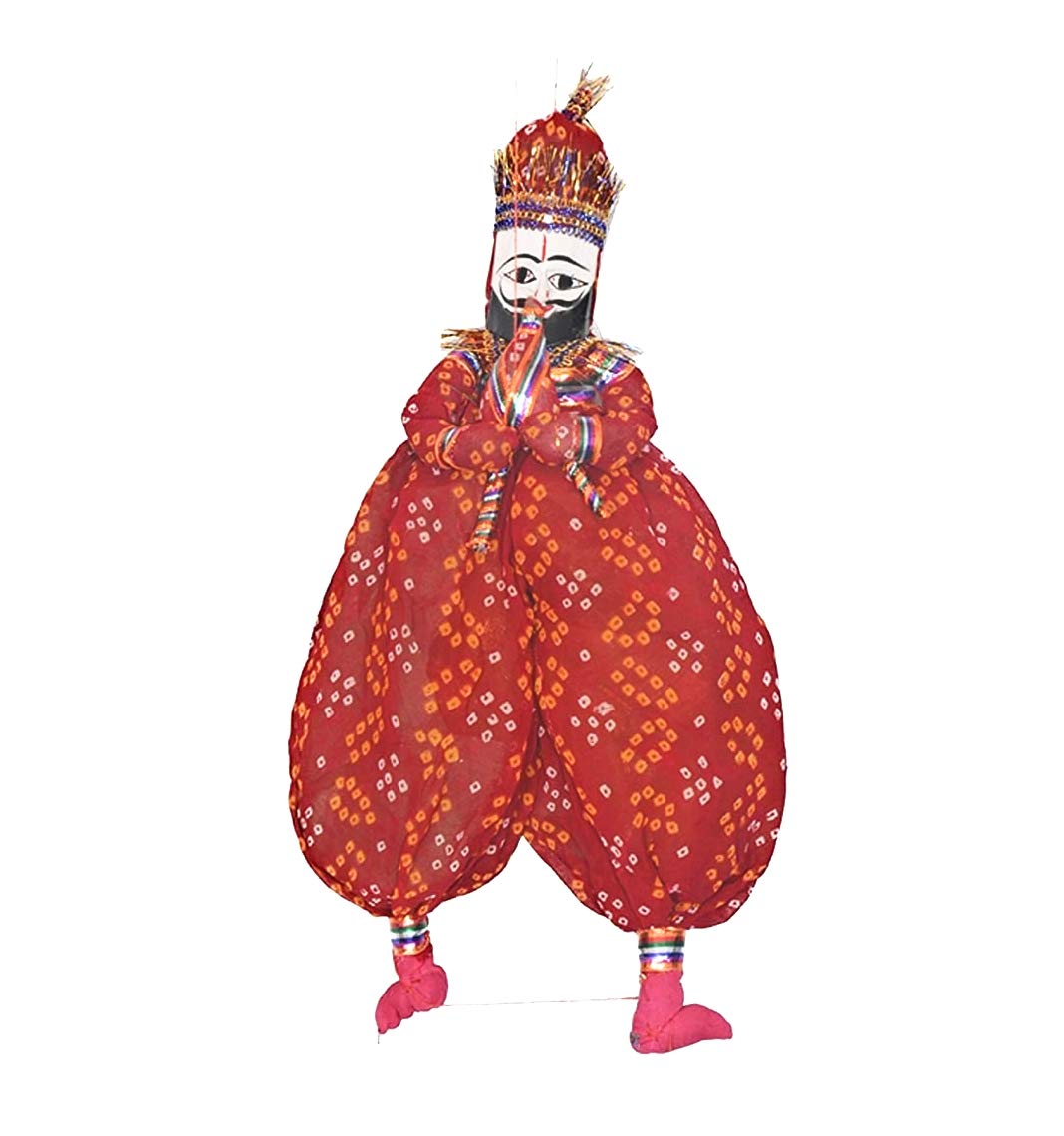 About Brand: RAJASTHANI PUPPETS is a rapidly emerging brand in Indian contemporary market. With an increase in Indias youth for the likeness of Indian Rajasthani Handicrafts & Antiques Bandhani clothes. Our brand has made a significant remark among Art Lovers. Our Philosophy is to bring together the world with the skilled craftsmen in remote India and doing everything in best possible way to get the unique art to the Buyer. Modern life is busy but never forget to slow down your pace and relax yourself our handicraft & furniture are the best medium to do so. About Product: RAJASTHANI PUPPETS Rajasthani Puppets (Kathputli) is a string puppet native to Rajasthan and is an ancient and well-known form of folk entertainment it is controlled by a single string. Kathputli is a join of two rajasthani language words Kath meaning wood and Putli meaning a doll which has no life. Kathputli means a puppet which is made entirely from wood. However it is made out of wood cotton cloth and metal wire. The string puppets of Rajasthan are famous as kathputhlis in the local language and the main centres where they are prepared are Jaipur and Jodhpur. SPECIFICATION -Speciality: Rajasthani -Material: Cotton Cloth & Painted wooden face -Type: Cultural string Puppets -Size: Men: height 20" Women: height 18 -Weight: 150gm. -Colour: Red -Best use: Hang using strings given. Use in cultural events gathering and theme parties. It can also be used for Home dcor. -Package Content: 1 pair of String Puppet; includes 1 male and 1 female puppet CARE INSTRUCTIONS: Dont dip in water dust with dry cloth and clean with damp cloth. DISCLAIMER: 1. Actual Color may vary from those shown in Images due to screen color settings of device. 2. There may be difference in size by 1" to 2"Inches. Disclaimer - Puppets are made of recycled/ waste cloth and waste wood material and our poor artisans give the traditional shape by the use of recycled/ waste cloth and waste wood.