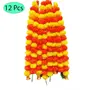 Artificial Marigold Fluffy Flowers Garland String with Bells Wall Door Hanging Latkans for Diwali Home Wedding Office Door Window Haldi Mehndi Festival Decoration Items (12 Pcs)