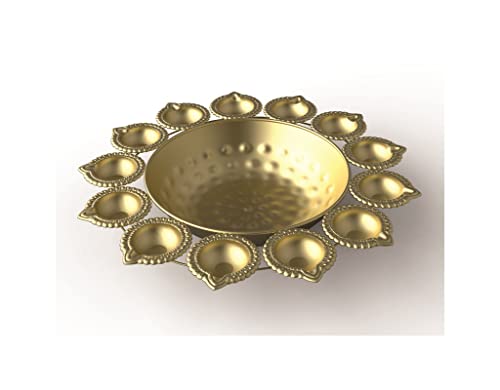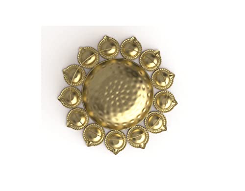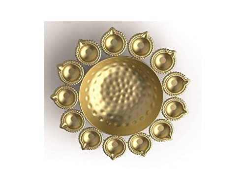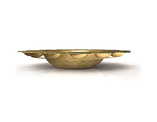 R Ayurveda Copper Diya Shape Flower Decorative Urli Bowl for Home Handicraft Bowl for Floating Flowers and Tea Light Candles | Diwali Decoration Items for Home (14 Inches, Alloy Steel)