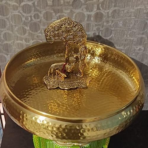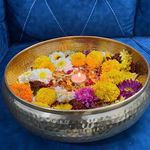 Urli a traditional vessel used in Hindu rituals and home decor holds immense cultural and spiritual significance. Its shallow basin design and intricate craftsmanship make it a captivating decorative accent that adds a touch of elegance and spirituality to any space. In Hindu Pooja rituals the Urli plays a prominent role as a vessel for various offerings and devotional practices. It is often used to hold water symbolizing purity and spiritual cleansing. Additionally the Urli's wide basin is perfect for creating stunning floral arrangements allowing you to showcase fresh flowers floating petals or fragrant garlands infusing your home or Pooja room with a vibrant and aromatic ambiance.