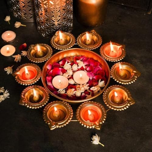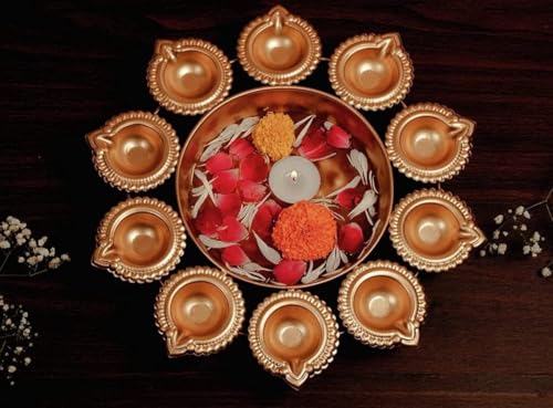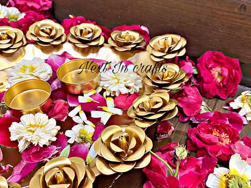 HomeHomeHome AccentUrulisNext In Crafts Diya Shape Flower Decorative Urli Bowl For Home Handcrafted Bowl For Floating Flowers And Tea Light Candles Home,Office And Table Decor| Diwali Decoration Items, Metal, Gold