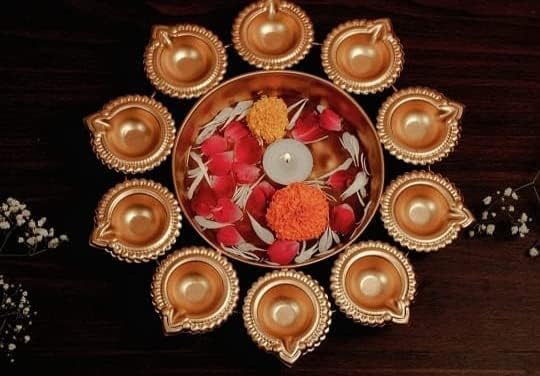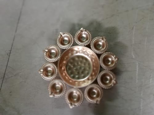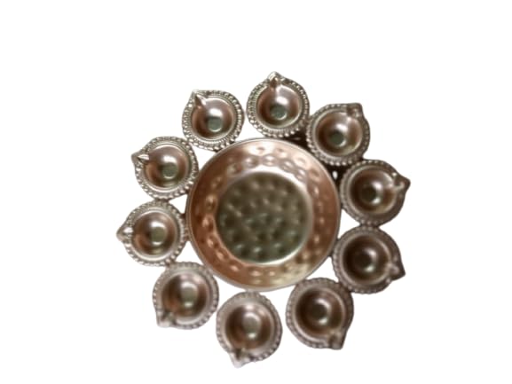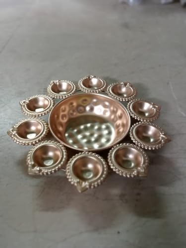 ZA Overseas this Diya Urli is made of high-quality Metal with intricate detailing that showcases the rich heritage of Indian artistry. The shiny Copper finish adds a touch of elegance and opulence making it a perfect addition to any home dcor. The Diya Urli features a large round basin that can hold water flowers or floating candles creating a mesmerizing and relaxing atmosphere in any room.