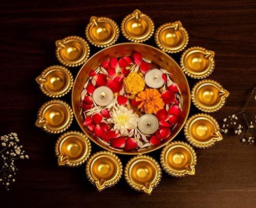 Decorate with Natural Flowers or Floating Tea Light Candles! Natural flowers add a natural element to any place. Every day you can make new and fresh with natural flowers. The Flower lovers can make a flower garden in their room with this decorative bowl. Just Pour Water in the decorative bowl and make flowers float on it! Makes your room beautiful and lively! A beautiful decorative element for your home or altar it is made of High-quality Metal. enhances your home decor & gives an elegant look to your space. An Authentic value gift for every occasion. It will give classic look to your home hotel office and restaurant. Commonly Used for Welcoming Guest on Various Occasions. The Golden Roses Shines with Floating Tea Light Candles. It's Grace Helps in Mental Peace & Spirituality. Fall in Love with this beautiful decorative bowl can be a perfect gift for any occasion. The best idea Thanksgiving or return gifts for special occasions and ceremonies like housewarming marriage birthday anniversary etc.