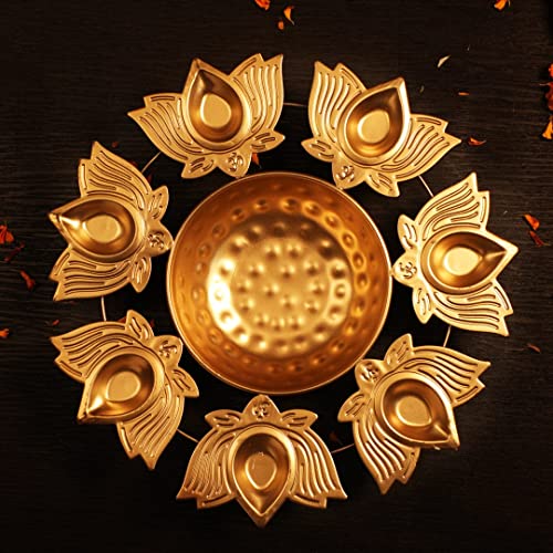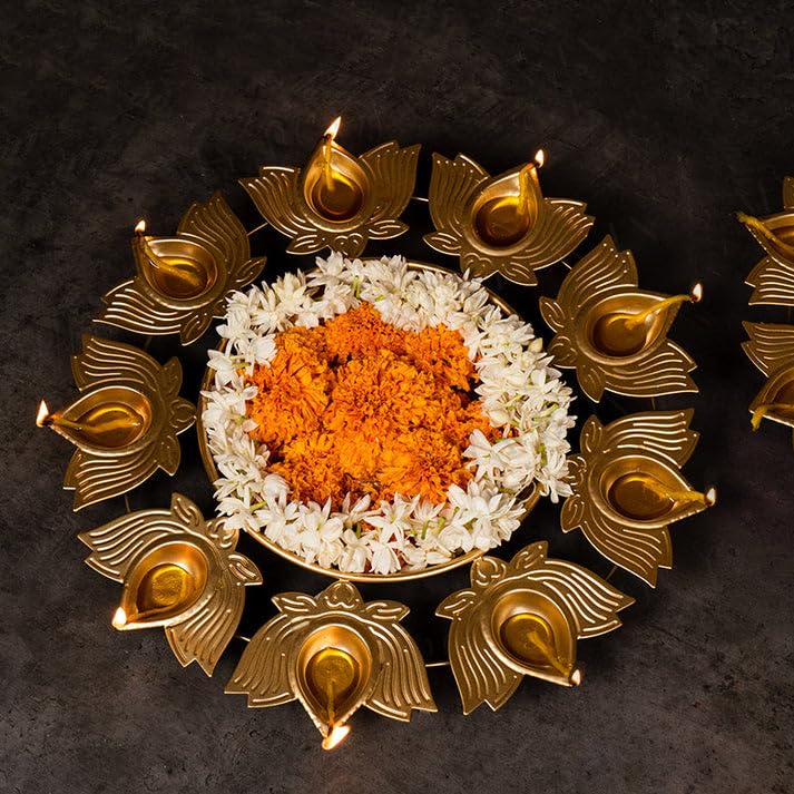 HomeHomeHome AccentUrulisNext in Crafts Kamal Diya Shape Flower Decorative Urli Bowl for Home Handcrafted Bowl for Floating Flowers and Tea Light Candles Home,Office and Table Decor| Diwali Decoration Items, Metal, Gold 12in