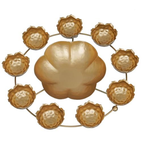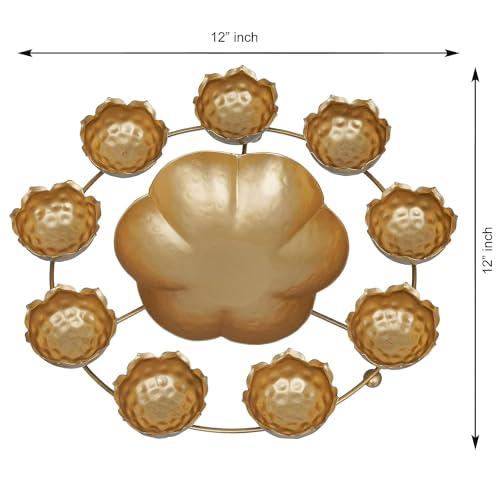 Kamla Art And Crafts Decor Bowl About product:Brighten up the dull and boring ambience of your living room with this shadow tea light holder. These Lotus Candle holder will not fail to leave a lasting impression on your guest. Made from metal this wonderful piece of art will surely accentuate your home decor. It serves as a great gift especially around religious celebrations and festivities. Each tea light holder is diligently handcrafted by skilled artisans from the house of Kamla Art using various traditional techniques It is made from sheet with excellent attention to detail finished in Gold. It is quite easy to carry and safe to use.Quality Material The unique artefacts are professionally handcrafted in sturdy metal with adequate size to capture the premium corner or shelf or any tabletop and evoke the decor vibes Dimensions Perfect Size: 12 inches x 12 inches x 3 inches (LxWxH). An ideal size that can be placed in every corner or centre of the space. An Ideal Gift Option Fall in Love with this beautiful decorative bowl can be a perfect gift for any occasion. The best idea Thanks giving or return gifts for special occasions and ceremonies like house warming marriage birthday anniversary etc. Item Shape: Round Metal Flower Decoration Urli Bowl For Home Decor