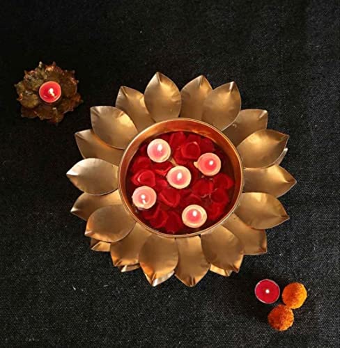 Antique Collection Handicrafts Metal Urli Bowl Lotus Design Showpiece Home Decor (Gold)