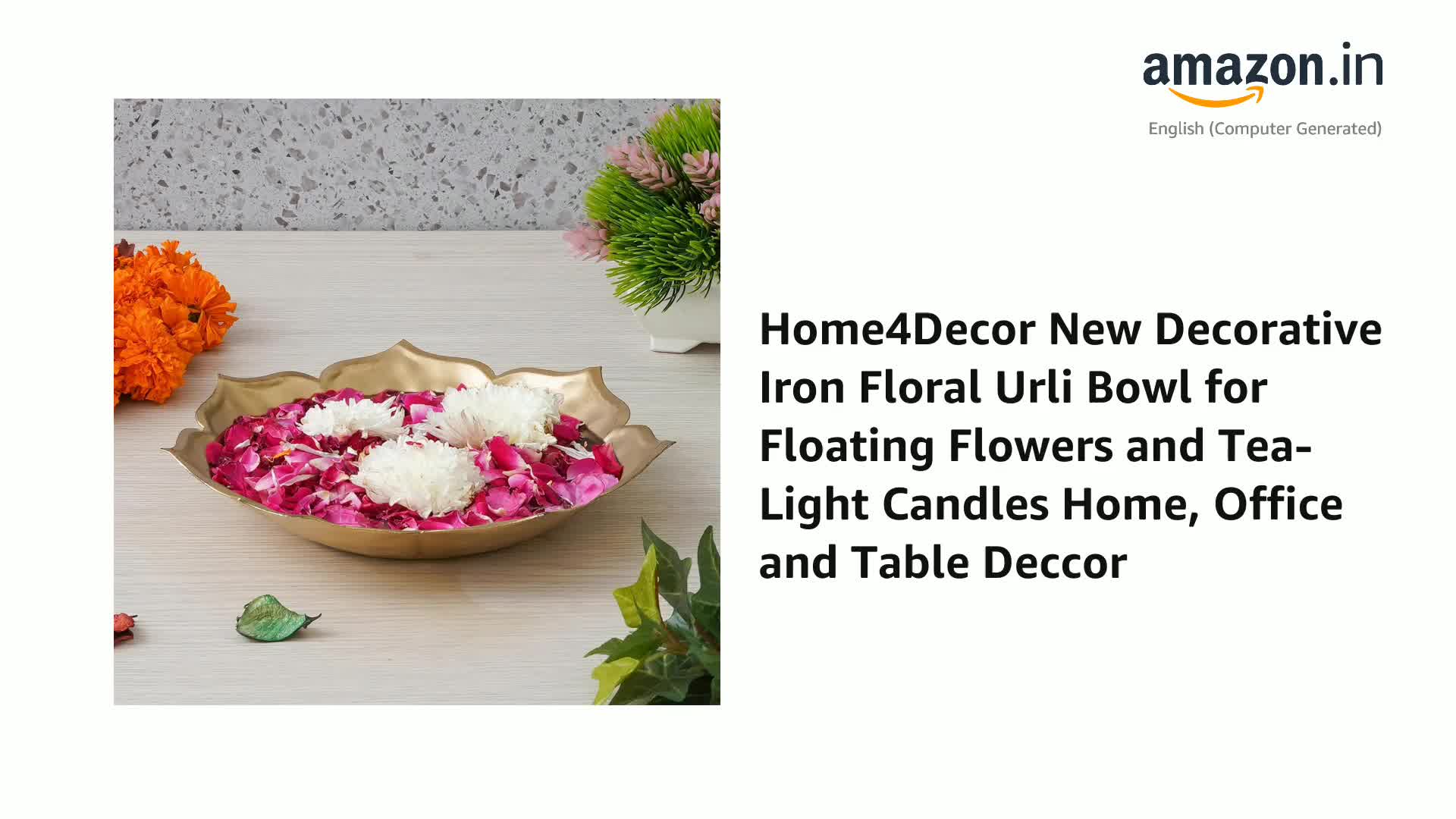 HomeHomeHome AccentUrulisHome4Decor New Decorative Iron Floral Urli Bowl for Floating Flowers and Tea-Light Candles Home, Office and Table Deccor (Size 8 inch)