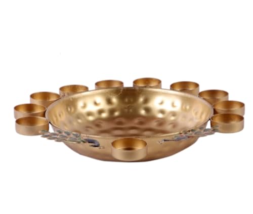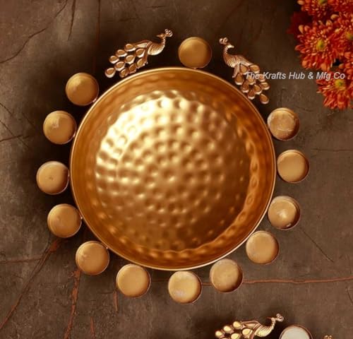 We bring this Beautiful Peacock design border Decorative Urli. Delicately handmade and skillfully hand-painted by craftspeople from the interiors of India. It serves as a great gift especially around religious celebrations and festivities. It is quite easy to carry and safe to use.(SIZE - 12 inch) Beautiful Handmade Metal Urli Easily recognizable by its distinctive shape the urli makes a handsome addition to the decor of any room and now you can enjoy the beauty of one that is made according to the time-honored traditions in your own home with the Handmade Urli along with hammered work on the bowl. This bowl for floating flowers or diyas is produced using sand casting techniques that have been passed down through generations of skilled metalworkers the Handmade Urli is a truly authentic Indian urli. To display the bowl in the traditional way fill it with water and then float living or artificial flowers on top. Add water to the urli mix a bit rose water and float flowers of your choice. You can also place floating candles on the surface of the water. No matter how you use the Handmade Urli you're certain to be impressed with its quality! Beautify your home with this traditional Indian decorative design. Add this Handmade Brass Urli with hammered work to your cart now!