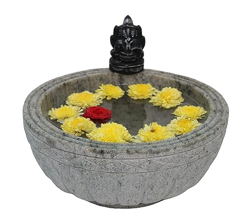 HomeHomeHome AccentUrulisMYNAKSHA Stone Round Shape Urli/Floating Flower Traditional Decorative Beautiful Handcrafted Urli Bowl for Home, Office and Table Decor, 10 inch