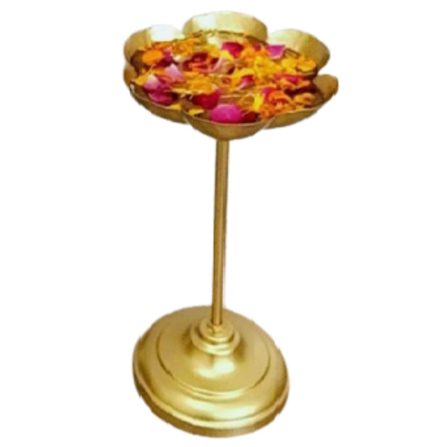 This gold polished Urli made out of Iron appears to be much more attractive because of its hammered pattern. Reflecting our Indian culture and tradition this stunning Urli with a stand will look gorgeous placed in your living spaces. This Urli will create an austere aura and will empower the aesthetic of your house. Easily recognizable by its distinctive shape the urli makes a handsome addition to the decor of any room. Beautify your home with this traditional Indian decorative design. Decor highlight for entrance (on the floor) or as a centre piece (on the floor or a table). You can also place in the living rooms on the dinning table balcony porches terrace garden etc. Perfect as a welcome decor for Homes offices business places restaurants and cafes. A good piece will last for a long time even generations with a little care and maintenance.