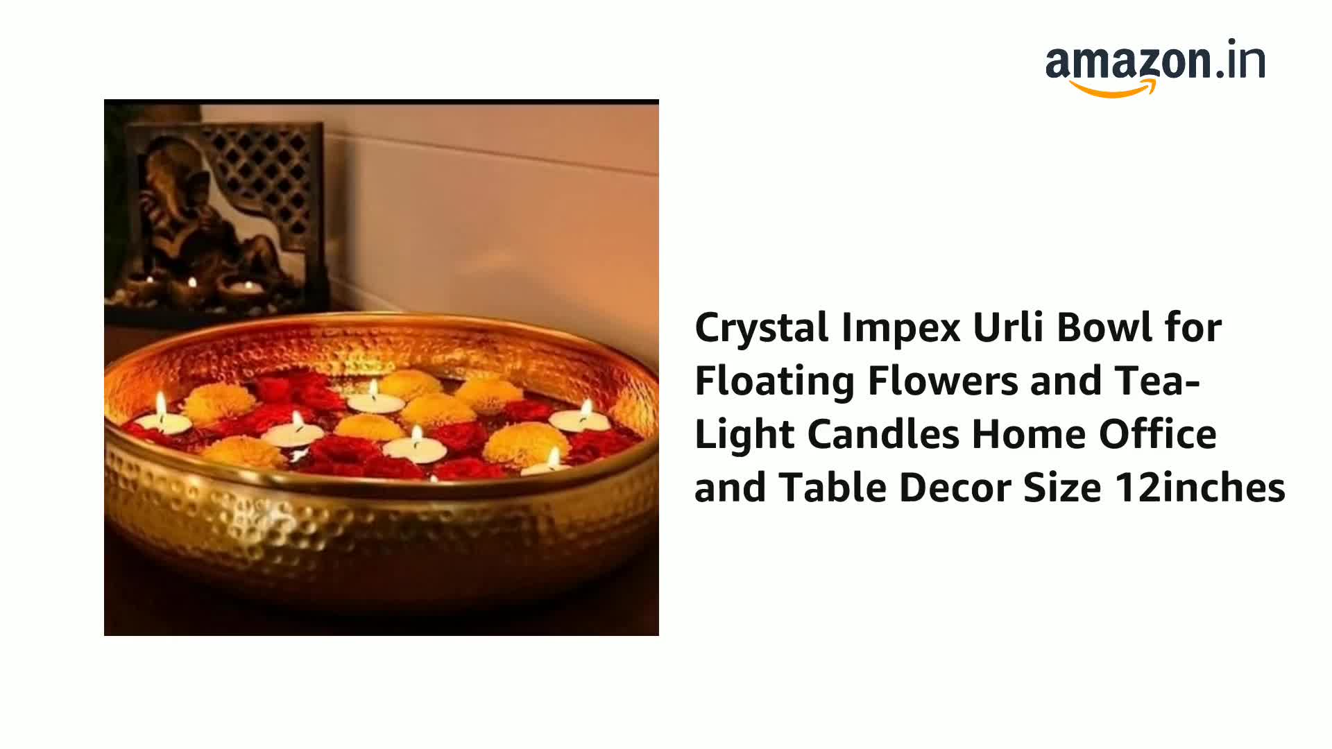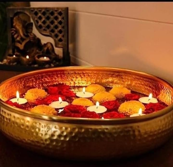 Crystal Impex Urli Bowl for Floating Flowers and Tea-Light Candles Home Office and Table Decor Size 12inches