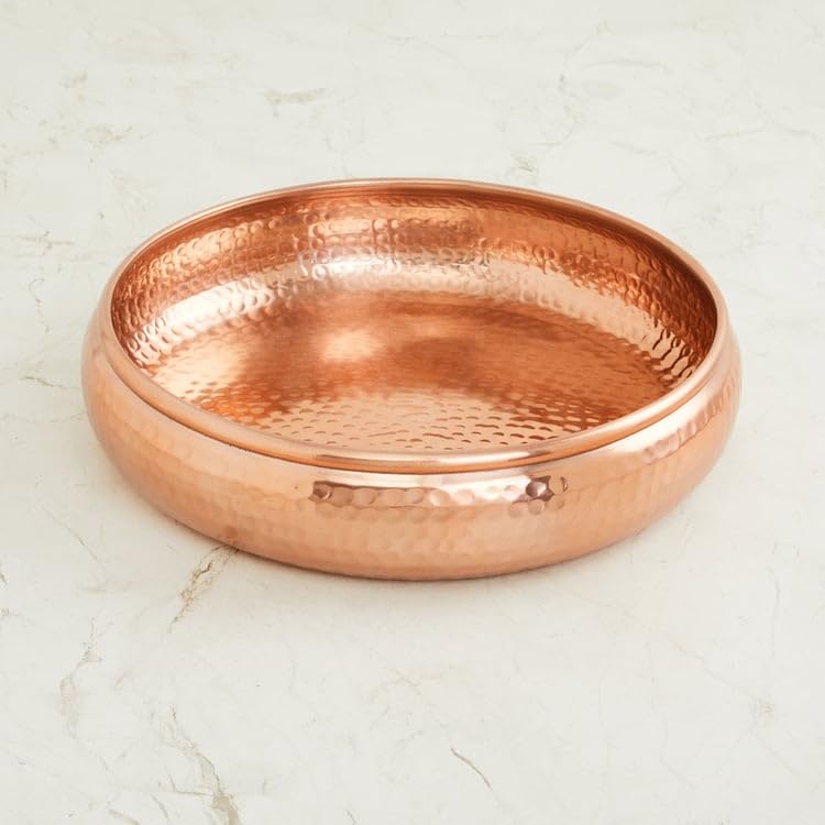 TANISHI Enterprises Urli Bowl for Floating Flowers and Tea-Light Candles Home, Office and Table Decor Size(Hammerd Golden Urli)