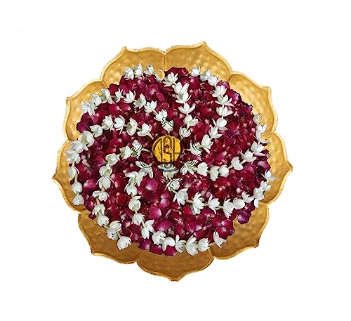 DSH Urli Bowl Round Flower Border Designer Bowl for Flowers and Tea Light Candles Home, 14 Inches Urli (Large), Office and Table Decor Best Gifts for Diwali Decor, Gold