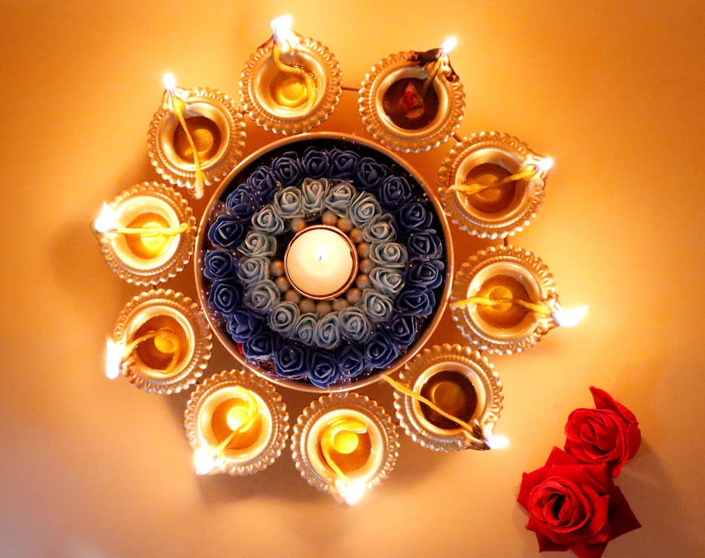 Illuminate your Diwali festivities with the exquisite Metal Floral Urli featuring a Floating Tea Light Holder a true embodiment of tradition and elegance. This Diwali Special Urli is designed to elevate your festive decor making it the perfect addition to your celebrations. Crafted with meticulous attention to detail this urli showcases intricate floral patterns and boasts a radiant golden finish seamlessly blending timeless charm with contemporary aesthetics. Its graceful design serves as a captivating centerpiece that will enchant your guests and family alike. What sets this urli apart is its built-in Floating Tea Light Holder allowing you to add a warm flickering glow to your surroundings. As you light up your favorite tea lights watch as the gentle ripples of water dance in the soft light creating an enchanting ambiance that captures the essence of Diwali. But this urli isn't just a decorative piece; it carries deep spiritual significance. It is the ideal vessel for holding colorful diyas during your Diwali Pooja creating a serene and sacred atmosphere for your prayers and rituals and infusing your home with positive energy. Looking for the perfect Diwali gift? Look no further! This urli is a thoughtful and heartfelt present that conveys your best wishes for prosperity happiness and spiritual abundance to your loved ones. Beyond Diwali this versatile urli serves as an exquisite home decor piece adding a touch of opulence and sophistication to any occasion be it a festive gathering or everyday decor. Embrace the rich traditions of Diwali with this remarkable Metal Floral Urli letting its radiant beauty light up your home and heart during the Festival of Lights. Celebrate tradition with a modern twist and make your Diwali celebrations truly memorable.