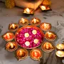 This Urli is made of metal and is sturdy and the metal urli do not bend or twist. It adds a vibrant touch to your indoor or outdoors when filled with flowers and T- Lights. The urli makes a handsome addition to the decor of any room and now you can enjoy the beauty of one that is made according to the time-honored traditions in your own home with the Handmade Metal Urli. Produced using sand casting techniques that have been passed down through generations of skilled metalworkers the Handmade Urli is a truly authentic Indian urli. To display the bowl in the traditional way fill it with water and then float living or artificial flowers on top. Add water to the urli mix a bit rose water and float flowers of your choice. Create a beautiful ambience by placing these urli in occasions. You can also place floating candles on the surface of the water. No matter how you use the Handmade Metal Urli you're certain to be impressed with its quality! Beautify your home with this traditional Indian decorative design. This urli is a perfect showpiece for those festive occasions when many people will visit you at your residence. Also to enhance its beauty even more we have a set of floating diya along with this urli.