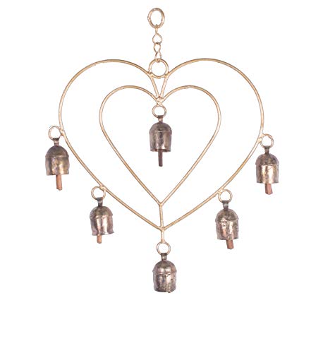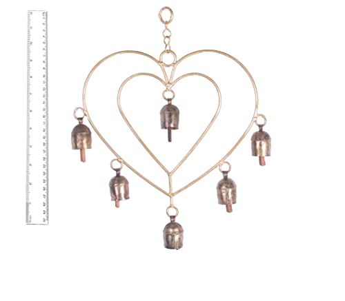 Double Heart - 6 Bells Hand Cast Metal Bell Kutch Handicraft Size : 33 cms Height x 23 cms Width x 3 cms Depth