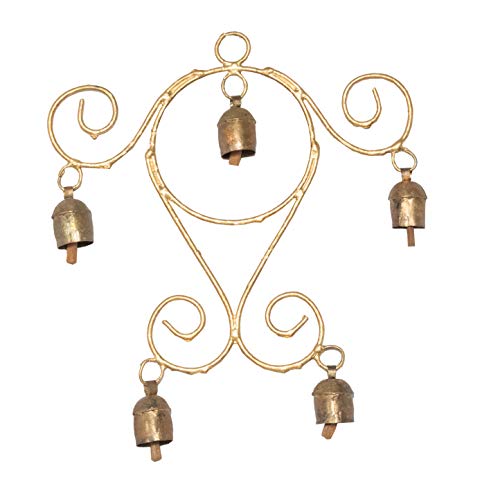 Metal Metal Bells - Hand Cast - Bell - 28 cms Length x 24 cms Width x 3 cms Depth - 5 Bells Horn Copper - Copper