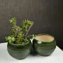 PRODUCT DESCRIPTION:The 'Olive Ridged' is the perfect globe-shaped ridge-patterned planter pot set for growing your favourite plants. Not only can you carry out planting on these beautiful pots but you can also create miniature gardens or terrariums out of these attractive and glossy handcrafted & hand glazed Ceramic planters!FEATURES:These handcrafted studio pottery pots are perfect for planting your favourite plants.Ideal to be kept in your garden balcony or anywhere indoors they can work as both floor or table planters.These can also be used to make miniature gardens or terrariums because of the round shape. They come with a smooth ridged surface that is hand glazed by our talented artisans in dual tones of Olive Green.NOTE:Please refer to the dimensions in the image.Each planter comes with a drainage hole at the bottom for excess water.There may be a slight variation in the glazing color or finish of the product as the glazing is done inside the furnace at a very high temperature to make the product solid and strong.Due to the firing done it is also sometimes impossible to predict the color of the glazing or finish. Hence the actual product may differ slighty from the images.This product is not made of Bone China.CARE INSTRUCTIONS:Handle with care.Remove the dust gently with a mildly wet cloth.