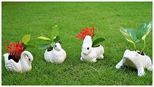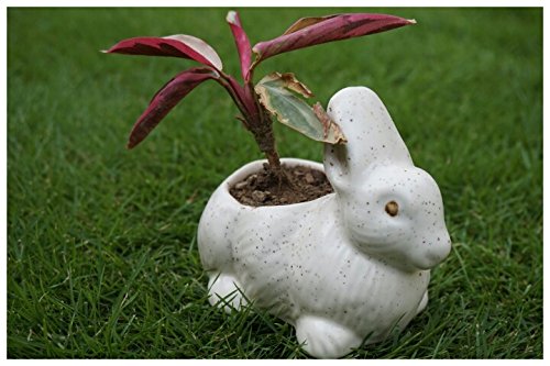 KHURJA POTTERY White Ceramic Mini Planter in Shape of Small Rabbit (Set of 2)